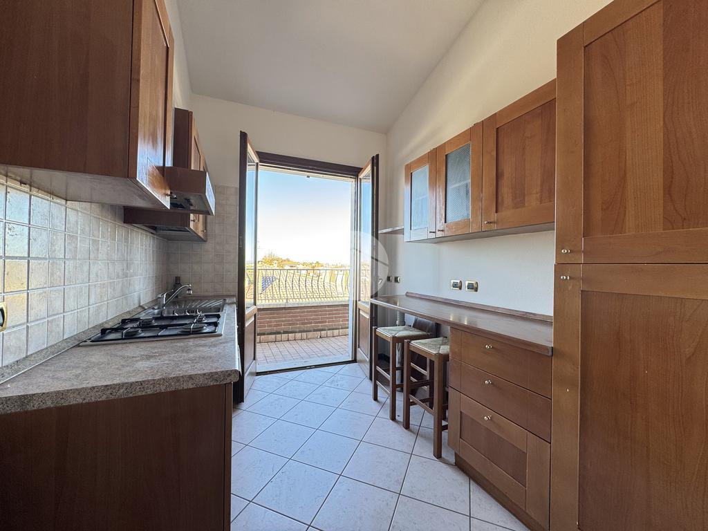 In una zona tranquilla e ben servita proponiamo un accogliente attico trilocale situato al secondo e ultimo piano di un piccolo condominio con poche unità. L’appartamento si distingue per la luminosità e la piacevole distribuzione degli spazi: il doppio soggiorno offre un ambiente conviviale e accogliente, mentre la cucina separata e abitabile garantisce praticità e comfort nella vita di tutti i giorni. La zona notte comprende due camere da letto e un bagno finestrato. Il vero punto di forza dell’immobile sono i tre ampi terrazzi, perfetti per rilassarsi all’aperto, cenare nelle sere estive o semplicemente godersi un momento di tranquillità. A completare la proprietà troviamo un garage con basculante sezionale e l’aria condizionata, che assicura comfort in ogni stagione. Questo attico rappresenta la soluzione ideale per chi cerca un ambiente curato, riservato e comodo ai servizi, con spazi esterni che rendono la casa ancora più piacevole da vivere ogni giorno.